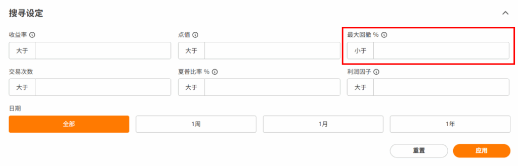 无论你的交易风格是什麽,建议所有人从「最大回撤」开始筛选。
