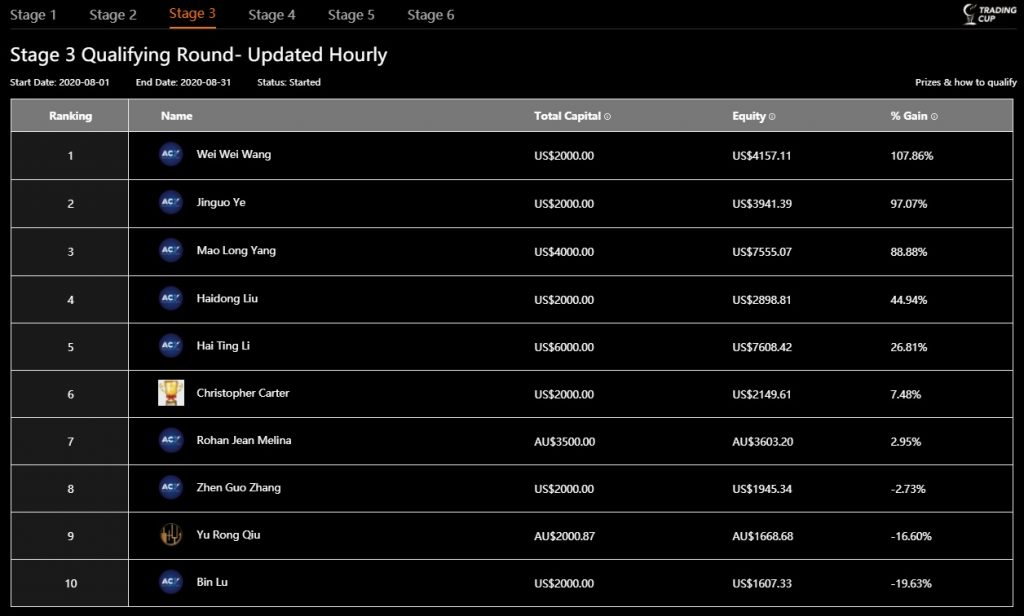 令人震惊的是,Jinguo Ye在8月27日才开始参加当月的Trading Cup比赛。