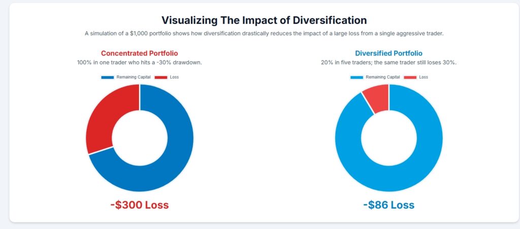 The Golden Rule: Never put all your capital behind a single trader. Diversify across multiple traders to reduce your risk.