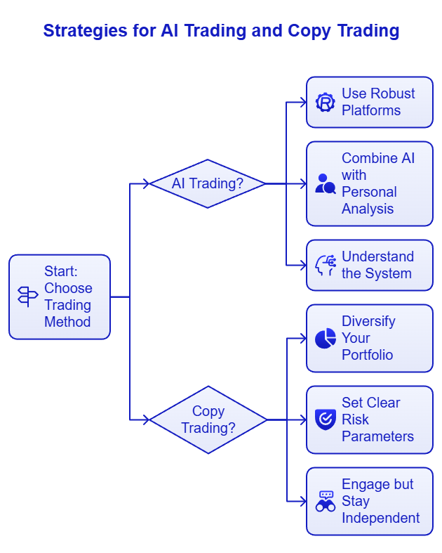 Whether you lean towards AI trading or copy trading, implementing the right strategies can enhance your results. Here’s how to make the most of each method: