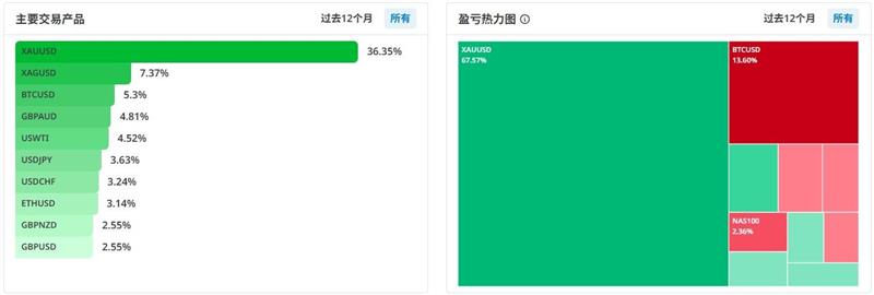 - 交易产品:以黄金为主,其余产品手数较为分散