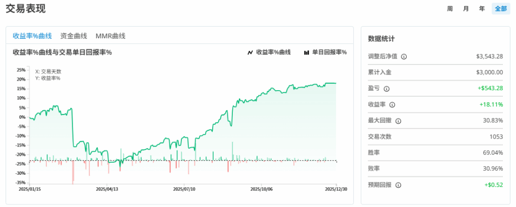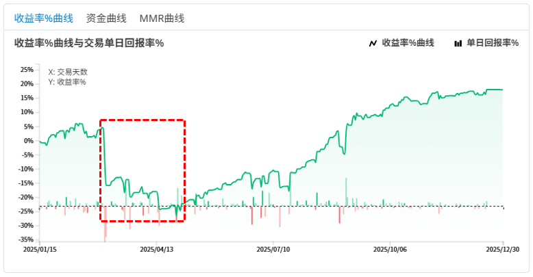 - 最大回撤(Max Drawdown): 30.83%,虽然曾在3-4月出现过阶段性回撤,但考虑当时经历川普关税政策的动荡,全年整体风控水平依然在可控范围内。