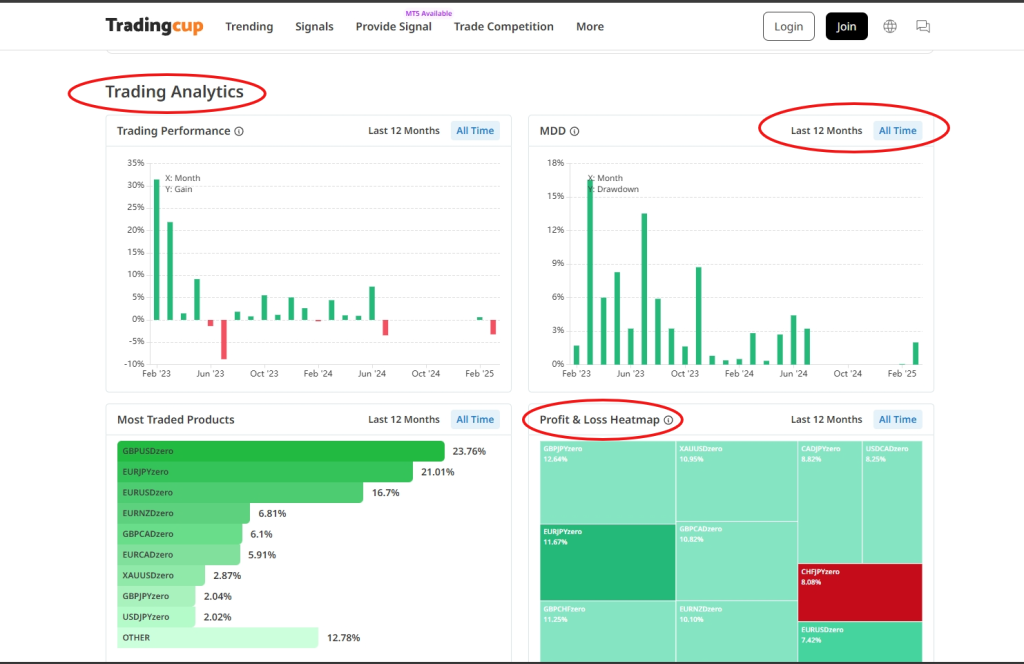 At Tradingcup, you can browse through a selection of signals and review past performance before you decide to copy.
