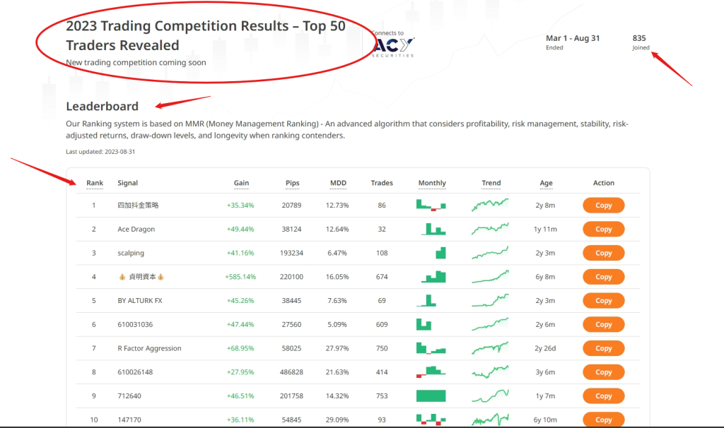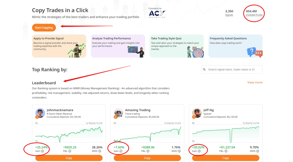 Tradingcup Tools: Use the Leaderboard to spot traders with a solid MMR ranking.