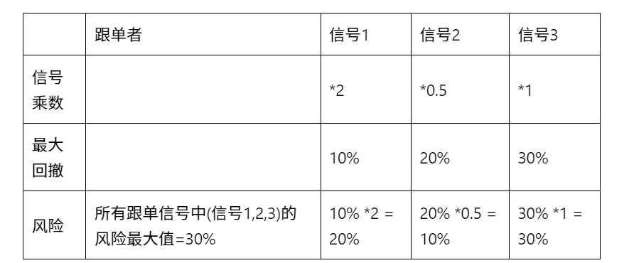 • 用来衡量跟单者整体的风险,从跟单者复制的所有信号中,取风险最大值即为跟单者的风险。