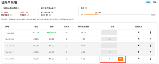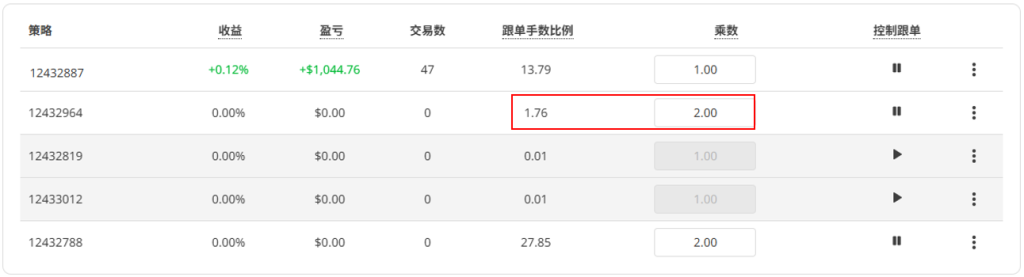 理解了资金倍数后,跟单者还能进一步透过信号乘数放大或缩小交易规模。