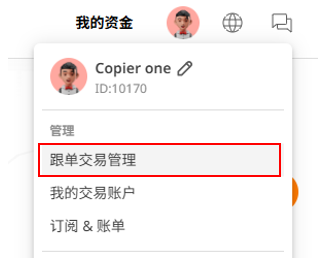 1. 登入您的账户后,点选自己的头像下的”跟单交易管理”功能,进入订阅页面。