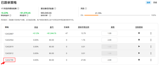 • 如果跟随的多个信号是属于同一个交易者或同一种模式,那么组合就会失去分散风险的功能,导致实际承担的风险远比”风险”栏位显示的比例更高。