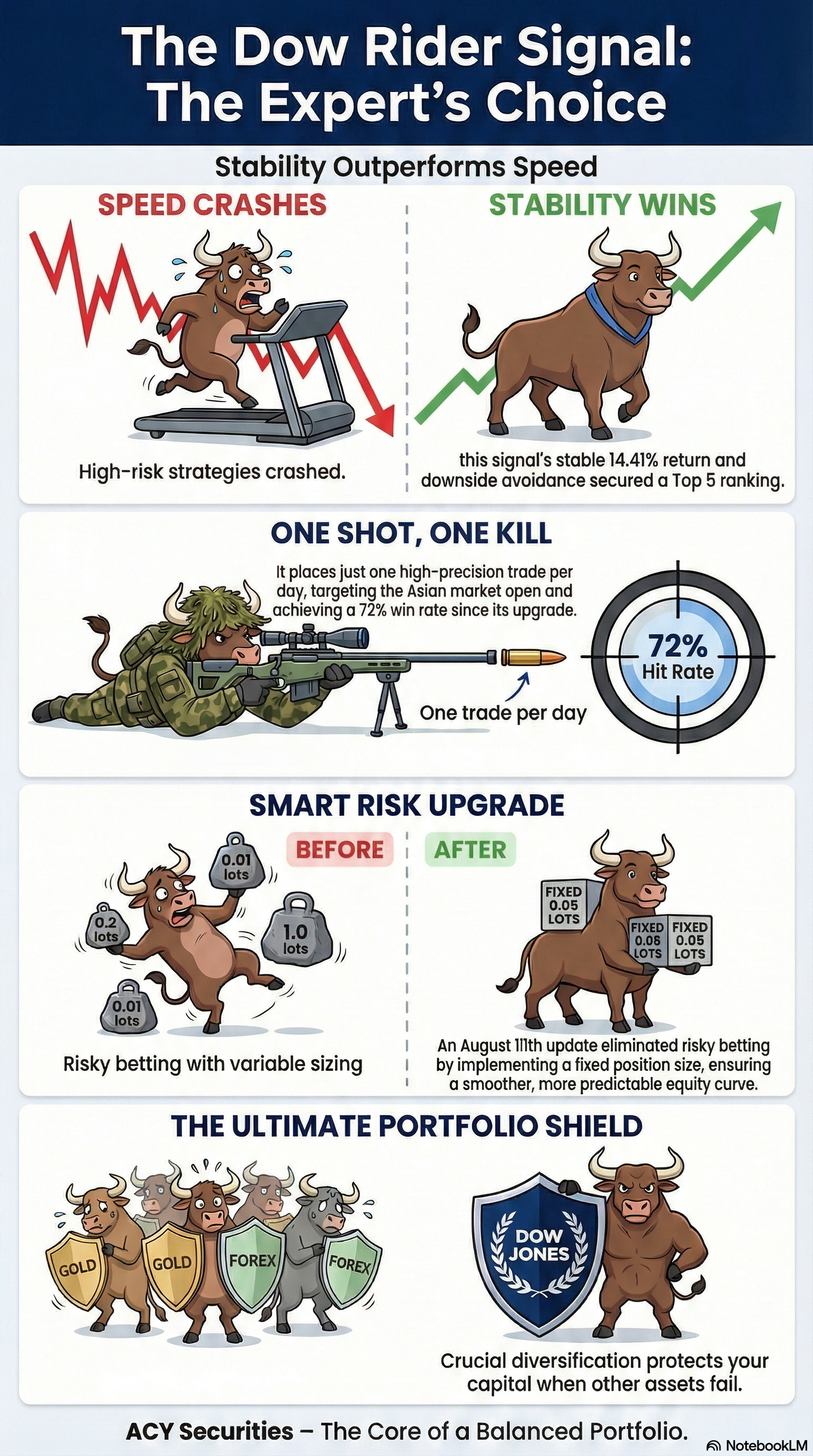 Dow Rider is not a signal that relies on luck or aggressive risk-taking. Instead, it is one of the rare strategies that places risk diversification, disciplined execution, and long-term stability at the core of its design. Within a copy-trading ecosystem, such signals are often more scarce and more valuable than high-return strategies.