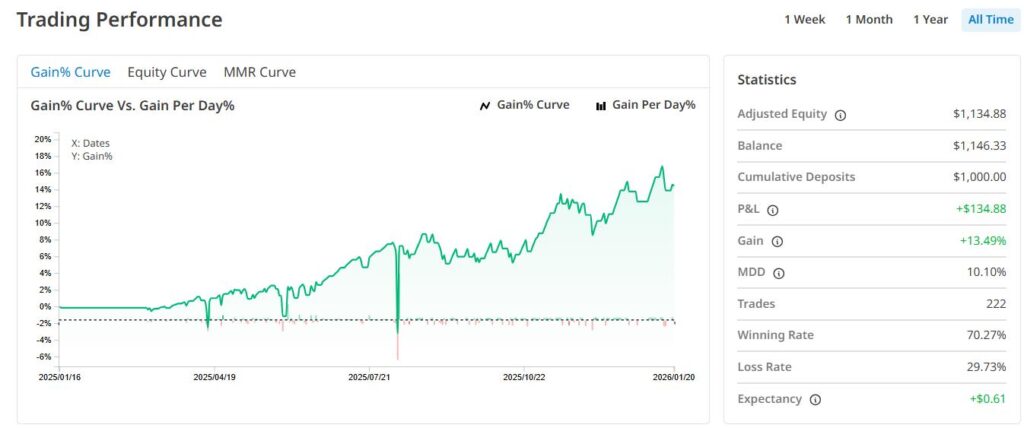Even after the position-sizing upgrade, a 14.41% return still struggles to attract most copy traders at first glance. From a purely results-driven perspective, this is not the kind of signal that immediately triggers a “must-follow” reaction.