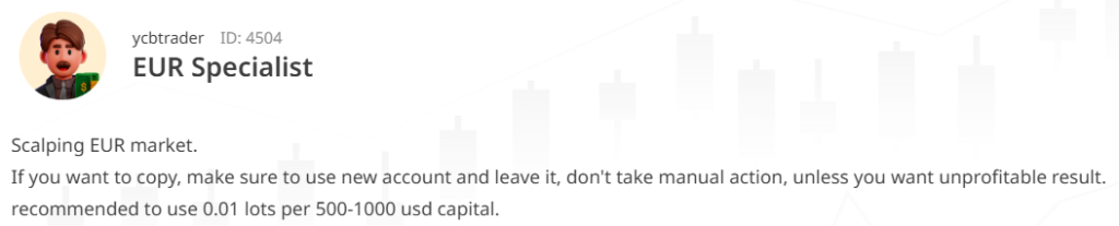 从ycbtrader的EUR Specialist策略我们可以知道,就算你只有小资金,只要你能专精于你有交易优势的市场,照样也能够交易的风生水起,这将让同样是小资金的跟单者充满了希望。