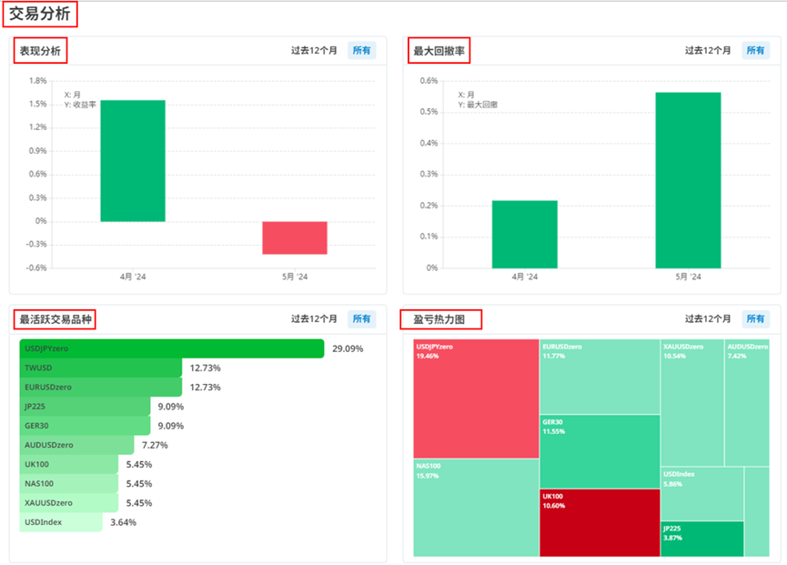 左上方的表现分析能够让你知道你每个月的损益分布。