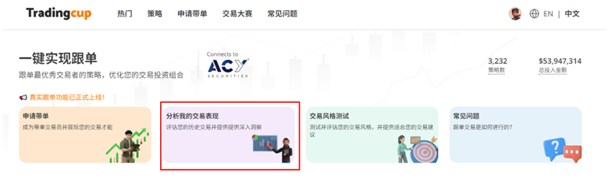 然后点击“分析我的交易表现”。