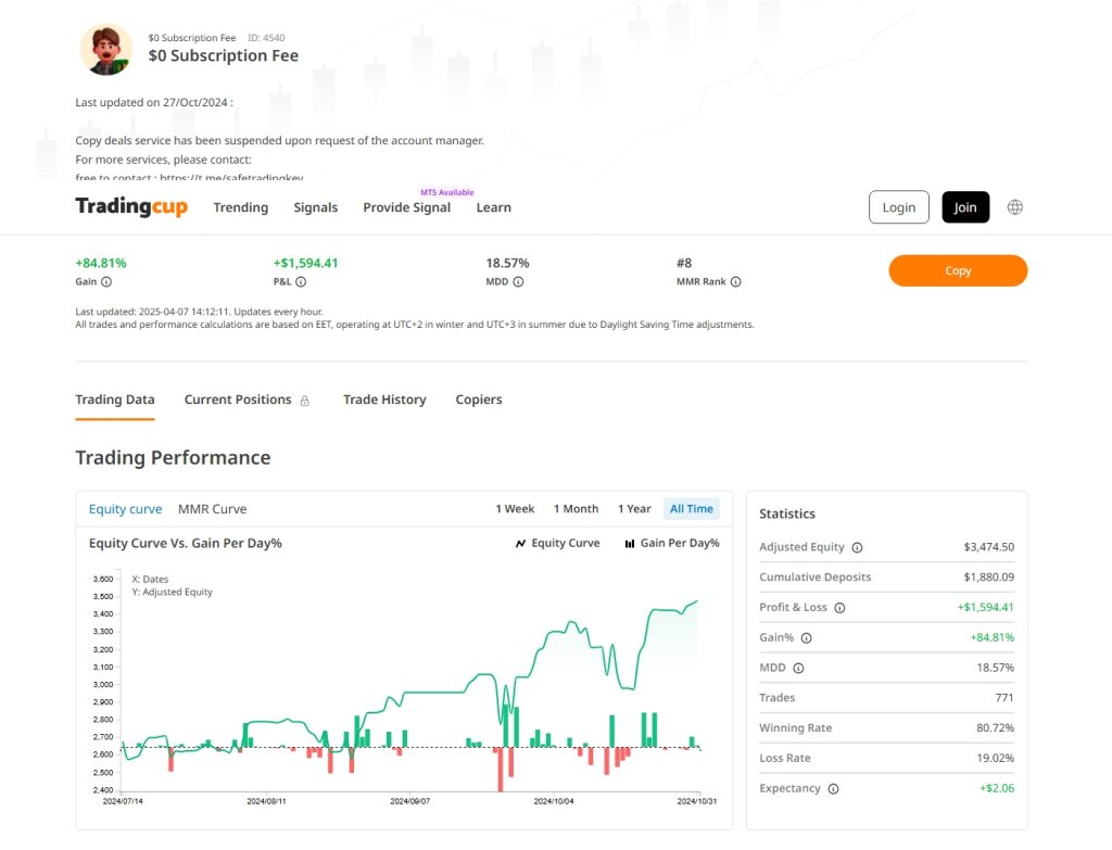 Note: Performance data is subject to change. Always review the latest statistics before copying a trader.