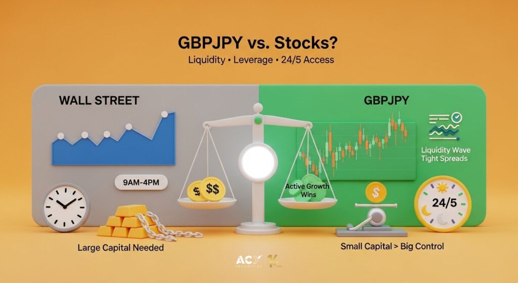 Profitability depends on strategy and risk management. GBPJPY offers higher leverage potential than stocks, meaning potentially larger gains (and losses) from a smaller capital base. Compared to Bitcoin, GBPJPY operates in a more regulated and liquid market, which can offer lower transaction costs and greater stability, making it a potentially safer, though perhaps less explosive, option.