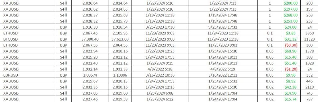 He even increased up to 1 lot size on 5 Gold trades that were all exited in profits.