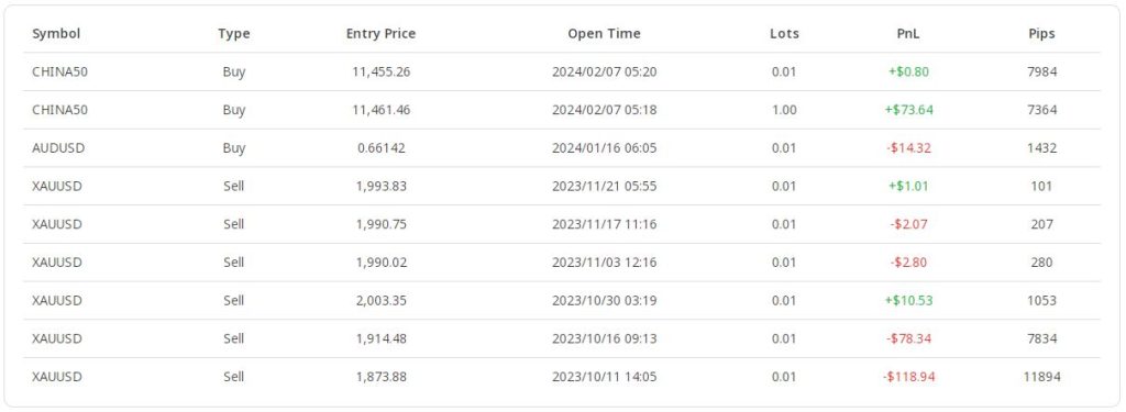 In Weiii’s case, when I look at his recent closed trades, he has a high win rate above 90%.