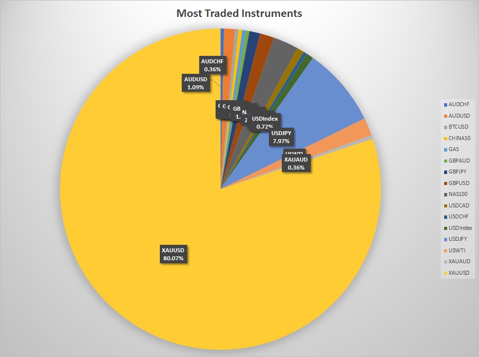 He performed a total of 288 trades across the following 18 trading instruments including: