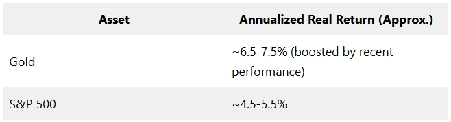 Observation: Gold’s outperformance in real terms over this specific 25+ year period, which includes several major crises and inflationary bouts, is notable.