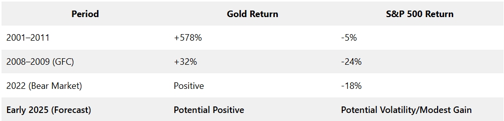 • Gold as Crisis Alpha: Historically, gold (XAUUSD) outperforms stocks during economic crises, acting as a reliable safe-haven asset.