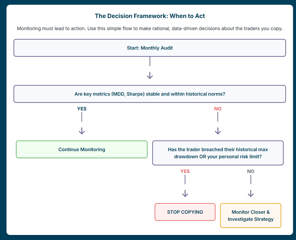 Monitoring is meaningless if it doesn’t lead to decisive action. Knowing when to stop copying a trader is just as important as knowing who to start copying. This decision should not be based on a whim or a single bad day. It should be triggered by the violation of clear, pre-defined rules.