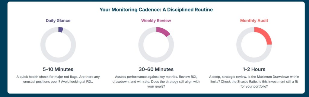 The goal of monitoring is not to become a screen-obsessed neurotic, reacting to every minor price movement. The goal is to establish a professional, disciplined routine that keeps you informed without causing emotional distress. This cadence can be broken down into three logical timeframes.