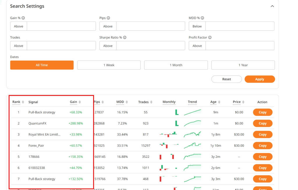 - Prioritizing traders with a low Maximum Drawdown (MDD) that you can personally tolerate.