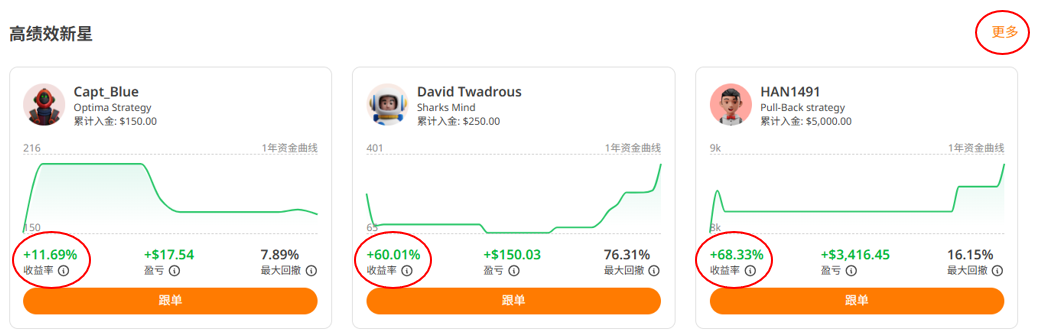 • 新锐高绩效信号:发掘近期表现突出的新秀交易者。