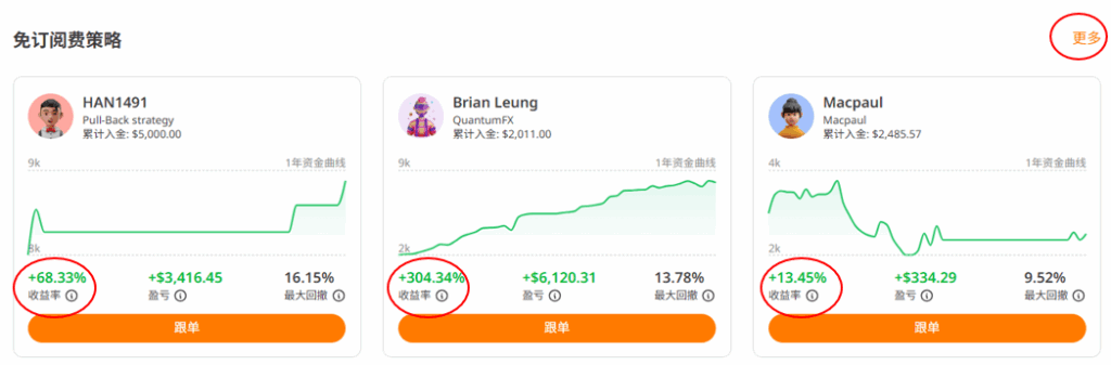 • 免费信号:不需订阅费用,适合初学者尝试复制交易。