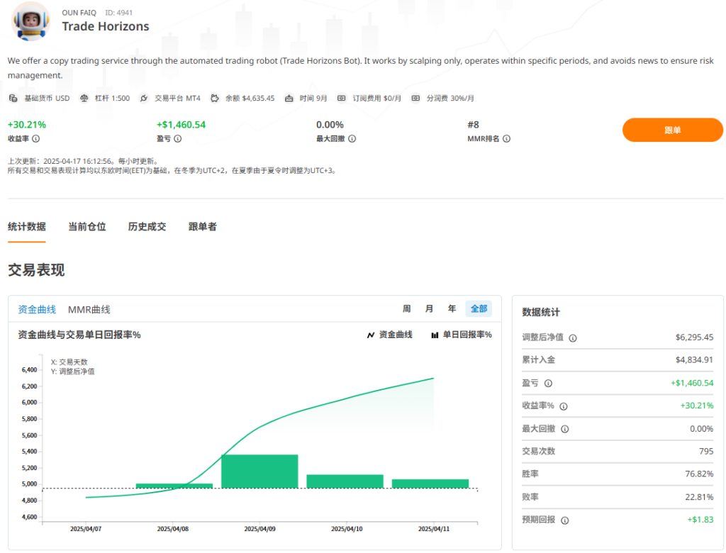 交易风格:Trade Horizons 采用全自动交易机器人,专注于剥头皮策略。系统会主动避开重大新闻时间,以降低风险,并仅在特定市场时段进行交易。