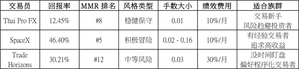 黄金交易为各类交易者提供了丰富的机会,而跟单交易不仅是新手入场的理想选择,也能帮助有经验的交易者优化策略、提升绩效。通过复制如 Thai Pro FX、SpaceX 与 Trade Horizons 等顶尖交易员的操作,投资者有机会在学习中实现稳健成长。