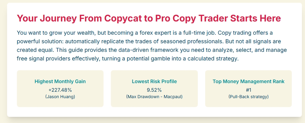 Facebook (now Meta) doesn’t guess what users want; it analyzes colossal datasets of user behavior, likes, shares, clicks, time spent on content to understand patterns and preferences with profound accuracy. The lesson for the aspiring copy trader is to emulate this data-driven mindset. Your goal is not to “move fast and break” your account by chasing hot trends. It is to move methodically, using the rich data available on a trader’s performance to make a calculated, strategic decision. Signal selection should be treated like a critical business analysis, not a spin of the roulette wheel.