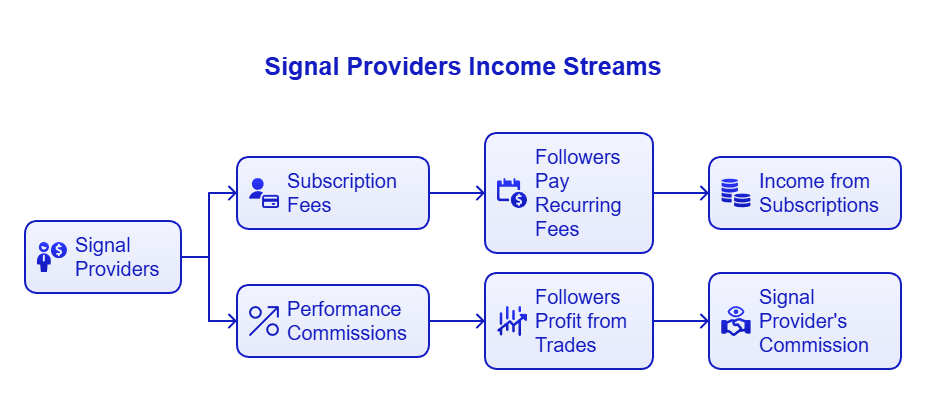 Signal providers generate income through two primary streams: