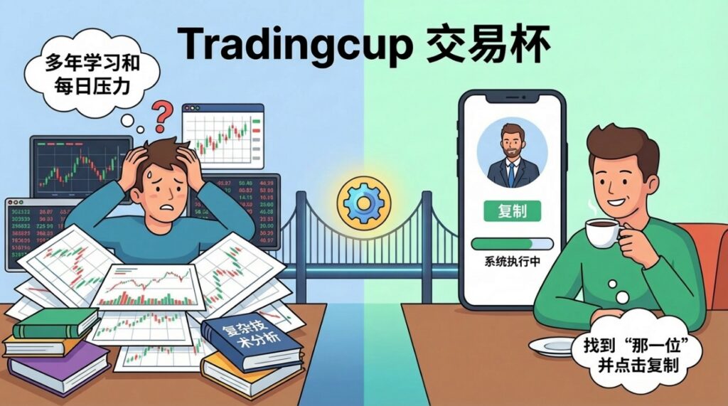 简单来说,Tradingcup交易杯是一个革命性的跟单交易平台(Copy Trading Platform)。它的核心逻辑非常简单粗暴:让你的账户自动复制那些经过市场验证的、表现最好的交易员的每一个操作。