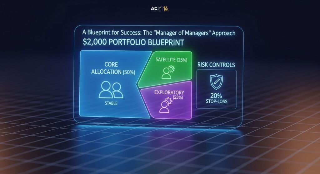 - Exploratory Allocation (25% – $500): Allocate to one Aggressive Trader, focusing on more volatile assets like crypto, with the understanding that this is your high-risk, high-reward play.