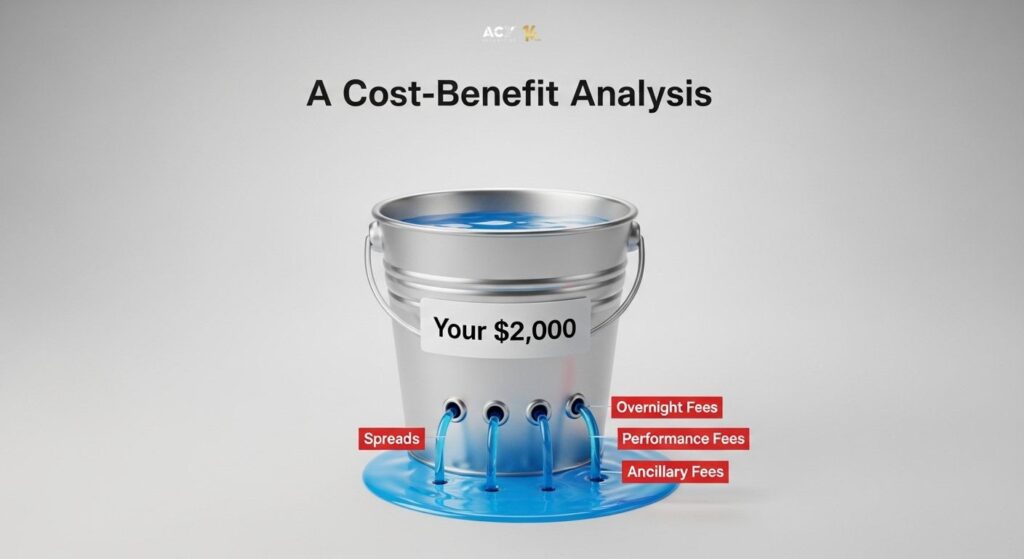 Let’s ground this in reality. You have $2,000 to invest. Is copy trading a financially sound decision? The first thing to understand is that there’s no such thing as a free lunch. Platforms often advertise “zero-commission” copying, but the costs are embedded within the trading process.