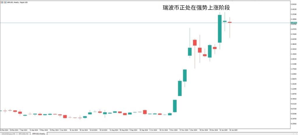 从周线图看,XRP在2025年1月出现突破性上涨,冲破了自2024年11月以来持续压制的0.75美元强阻力,并刷新了2018年1月创下的历史高点。
