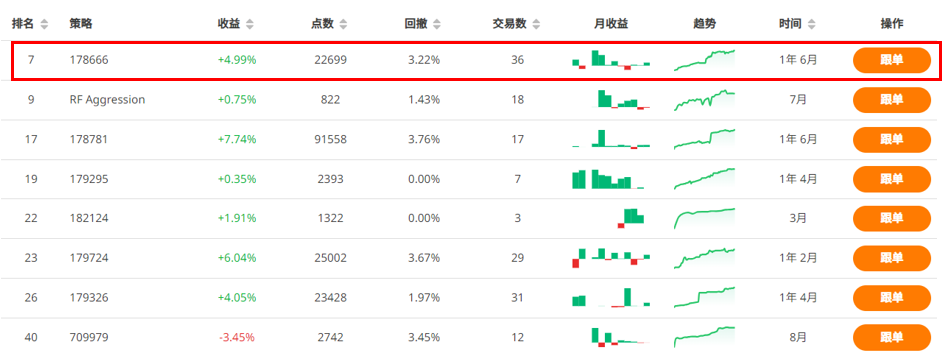 接着会看到以下的结果,其中引起我关注的是搜索结果第二笔、目前MMR(Money Manager Ranking)排名第7的策略。