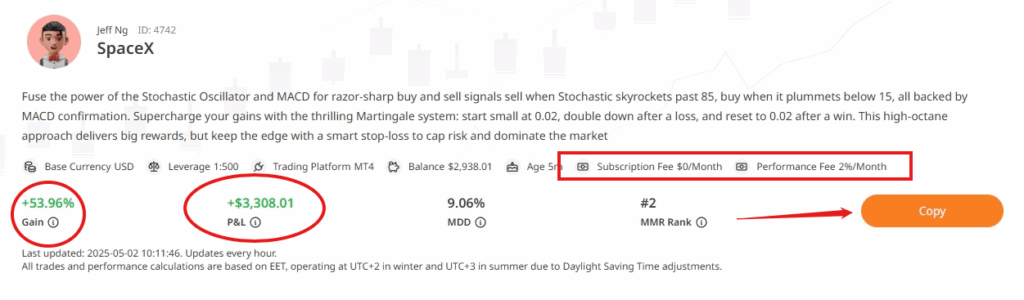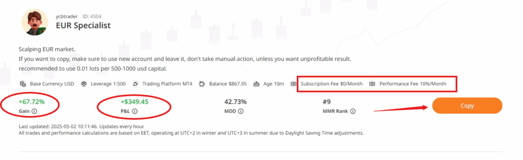 • Thorough Due Diligence: Research platforms and potential traders rigorously. Don’t just look at headline returns. Analyze their full track record, maximum drawdown (MDD), risk score, strategy details, trade frequency, and asset focus.