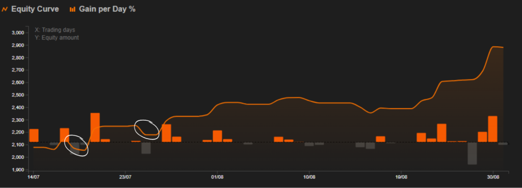 As evident from our analysis, Jahed has managed to keep his drawdown to a minimum, as previously discussed in the context of portfolio allocation. Throughout his trading journey, he encountered two notable drawdowns, each accounting for approximately 2.5%, totaling to 5% in aggregate. The remaining 1% of drawdown is attributed to smaller fluctuations.