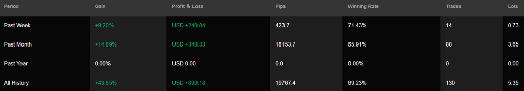 In the past week, Jahed has demonstrated an impressive performance, yielding a remarkable 9% profit on his total equity, resulting in a profit of $240.84. This achievement is accompanied by an outstanding win rate of 71.43%. These figures reflect Jahed’s well-executed trading strategy, particularly considering that he executed just 14 trades, totaling 0.73 lots. Simple math reveals that his average lot size per trade stands at approximately 0.05 lots.