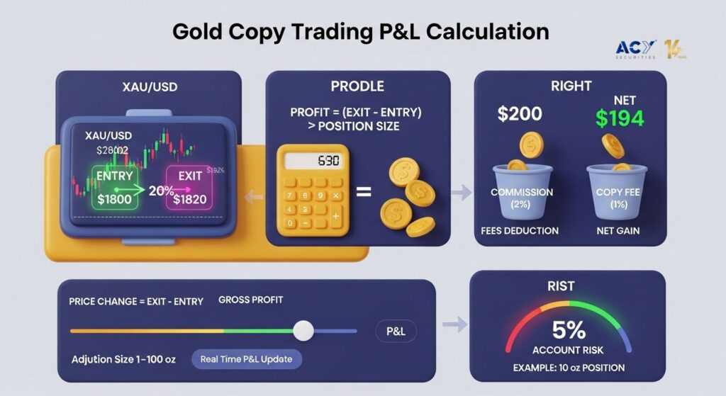 In a nutshell, your profit or loss is determined by the change in the price of gold from when your copied trade was opened to when it was closed, multiplied by the size of your position. You also need to factor in any fees or commissions charged by the platform and the trader you are copying.
