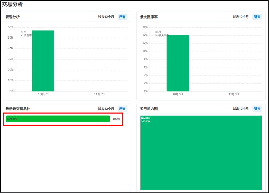 接着我们从交易分析这个栏目(如下图3)可观察到目前此策略仅仅交易一个品种,就是纳斯达克100股价指数(NAS100),这在过去的分析当中是比较少见的,因为我们过去看到最多量化交易者使用的品种是EURUSD,且大部份是使用所谓的马丁格尔策略体系(在有浮亏时不断加码),原因在于EURUSD这个品种,按照Gary的研究,本身的盘整属性相对较强,因此比较适合使用马丁格尔一些。