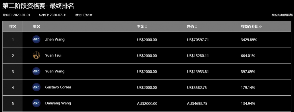 我们将陆续为大家送上获奖者的采访,敬请期待。我们将深入研究他们的交易策略,思维方式以及他们在7月第二阶段交易杯比赛中的表现出色。