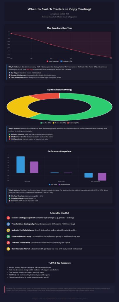 Disclaimer: The information in this article is for educational purposes only and does not constitute financial, investment, or trading advice. Copy trading carries substantial risks, including the potential loss of your entire invested capital. Past performance of copied traders or strategies is not a reliable indicator of future results. You may be replicating high-risk trades, overleveraged positions, or strategies incompatible with your financial goals. Always conduct independent research into a trader’s historical performance, risk metrics, and strategy before copying them. Never invest funds you cannot afford to lose. Consult a licensed financial advisor to ensure copy trading aligns with your risk tolerance, financial objectives, and regulatory requirements in your jurisdiction. This article does not endorse specific traders, platforms, or strategies, and all trading decisions remain your sole responsibility.