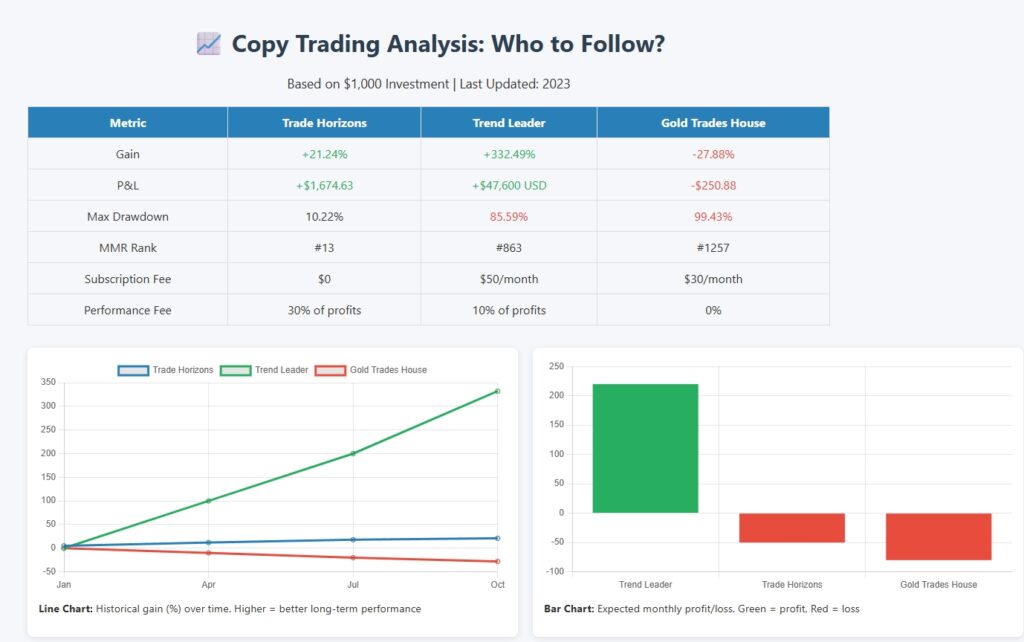 4. The “Missing Option” – Seek Consistency and Lower Risk: The ideal copy trading provider (which may not be in this list) would show consistent, albeit perhaps more modest, gains with a significantly lower maximum drawdown (e.g., under 15-20%). Is there a provider that offers a better balance of reasonable returns with controlled risk?