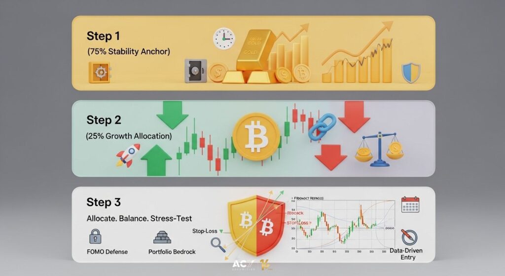 True financial strength comes from a balanced and deliberate strategy. It comes from understanding the roles different assets play in your portfolio, the explosive growth potential of Bitcoin and the steadfast security of gold. By anchoring your wealth in stability and making calculated forays into high-growth opportunities, you move from being a gambler to being a true investor.